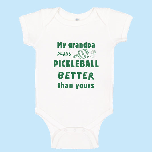 My grandpa plays Pickleball better than yours baby onesie bodysuit