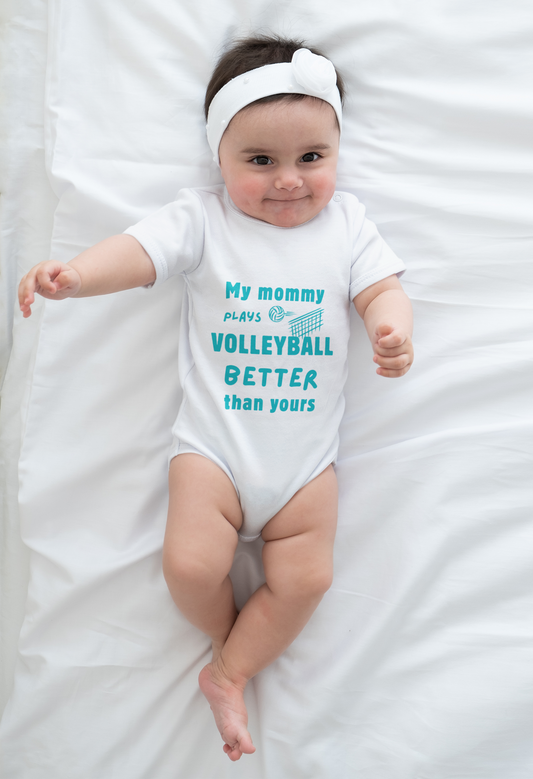 My mommy plays Volleyball better than yours baby onesie bodysuit