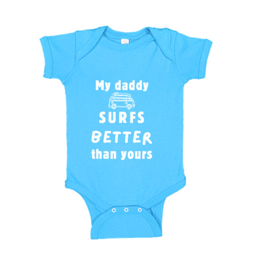 My Daddy Surfs Better Than Your Daddy Surfer Baby Onesie bodysuit