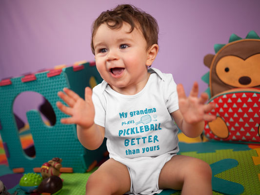 My grandma plays Pickleball better than yours baby onesie bodysuit