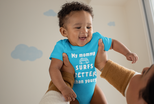 My Mommy Surfs Better Than yours Surfer Baby onesie bodysuit