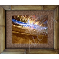 "3 Inch Wave Curl"" Color Photographic Art Print, 3 inch wave from backside, Banzai Pipeline (Ehukai Beach) North Shore, Oahu, Hawaii. Really cool image, you can see the sand grains kicking up at the bottom and the orange lifeguard tower in the curl. Matted in a Natural Grass Mat and framed in a handmade Natural Bamboo Frame. Bamboo Frame is hand sanded and stained twice. Made in California, USA. Dimensions; Print 11" x 14", Natural Grass Mat 16" x 20", Natural Bamboo Frame 2" x 20" x 24"