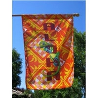 Aloha means "hello, goodbye, love, or love to you." It is a word that represents Hawaii and the Hawaiian spirit well. This flag features a pineapple Hawaiian quilt block with a palaka print to honor the histoy of one of Hawaii's traditional crops - the pineapple. And a beloved Hawaiian gecko climbs the letters of ALOHA to greet you.