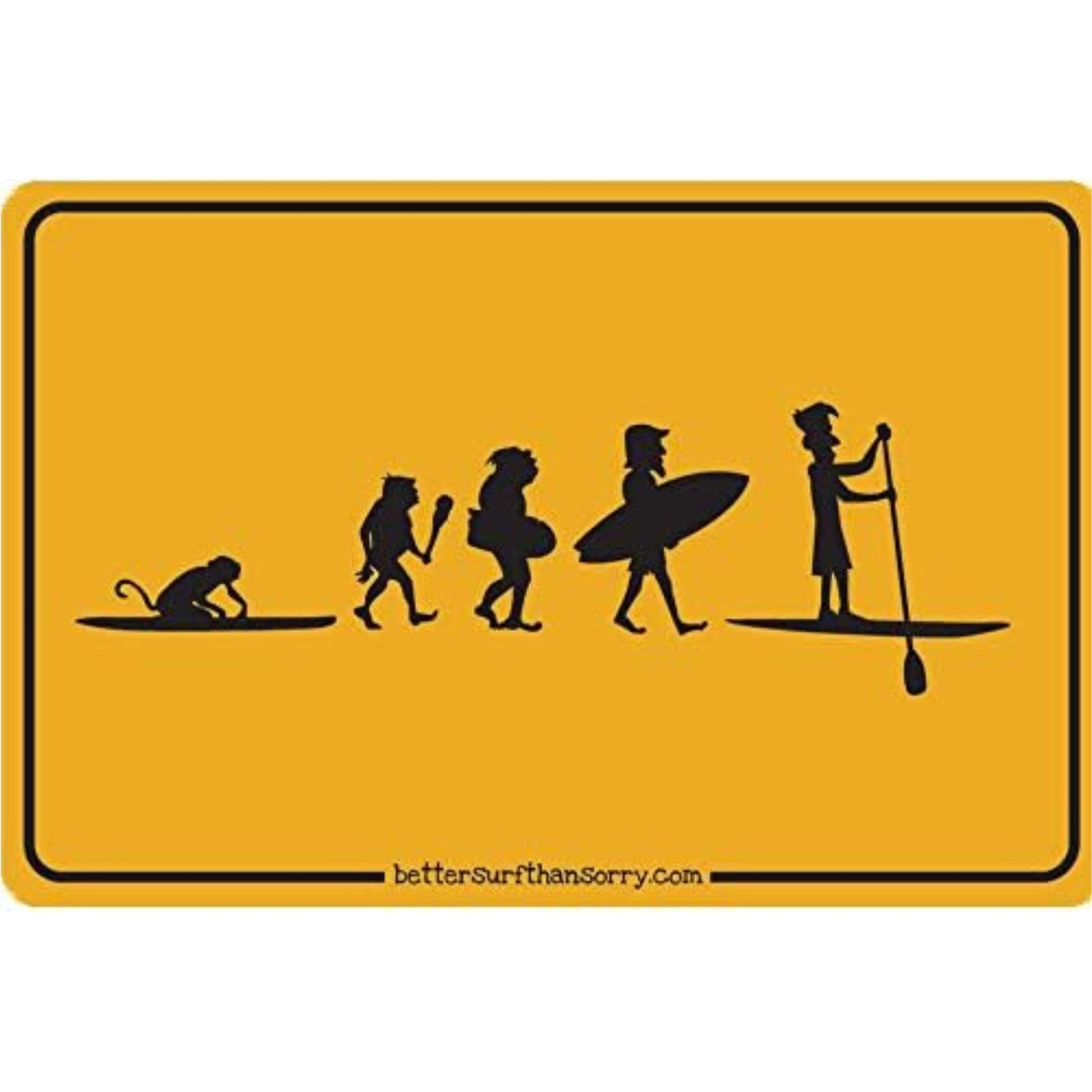 12"x18" Aluminum durable indoor/outdoor street traffic / parking-style sign that shows the Evolution of Stand up Paddling. Makes great decor for your home, office. dorm room, or out on the patio or garage. Fabricated with predrilled hanging holes on the top and bottom for easy installation. . Made in the USA.
