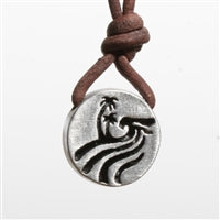 Round Pewter Hawaiian North Shore Surfer Pendant Necklace by Zula Surfing