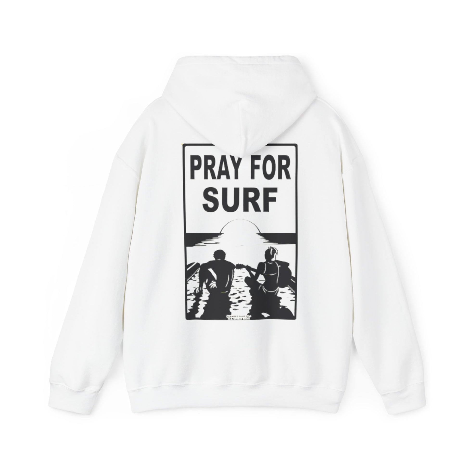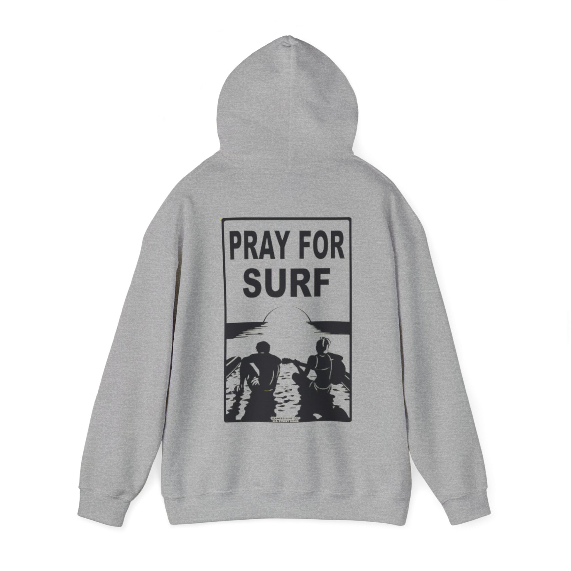 Cool surfer hoody sweatshirt with a 'Pray for Surf' design, making it a great gift for surf enthusiasts. The hoodie provides a cozy and stylish look, perfect for staying warm on chilly days. Ideal for those who love the beach, surfing, or coastal vibes. Great for birthdays, holidays, or casual everyday wear.