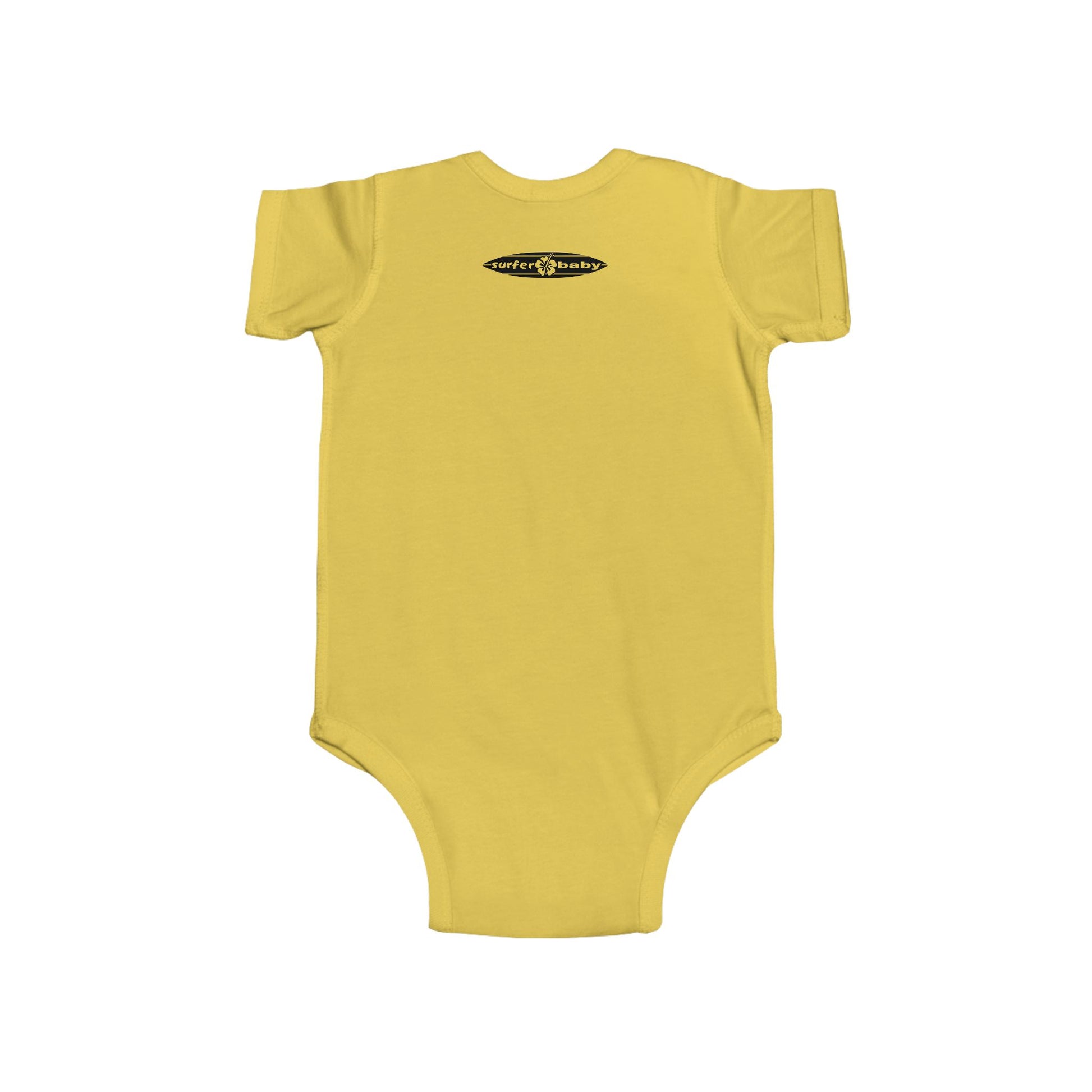 This adorable baby bodysuit is perfect for your little one to show off their love for surfing. The cozy fabric and ribbed knit binding make it comfortable for all-day wear. Ideal for infants with cool uncles who surf better than anyone else. A great gift for baby showers, birthdays, and family beach trips.