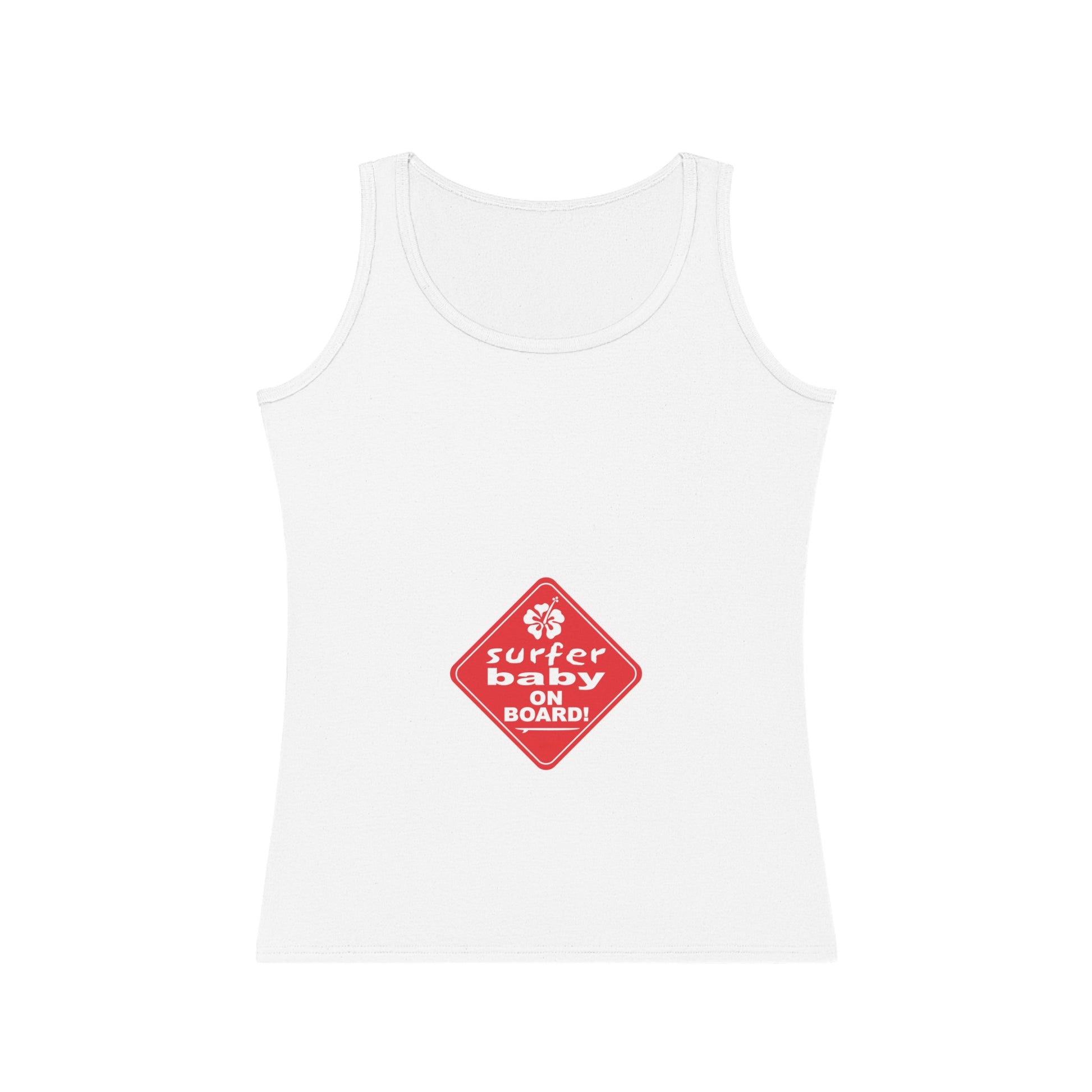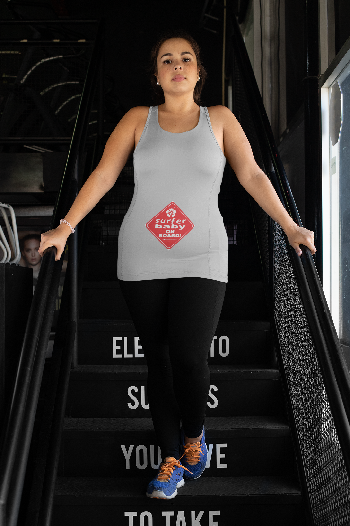 Stay cool and stylish with our Surfer Baby on Board maternity tank in boy blue. This comfortable tank is perfect for expectant mothers who want to show off their love for surfing. Made with high-quality material, it's perfect for the beach or everyday wear.